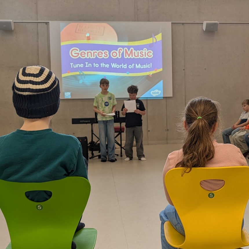 Now the students are becoming little music experts themselves! In short presentations, they introduce their favourite songs to the class. They talk about the genre, the instruments they can hear, and what makes the song special to them.