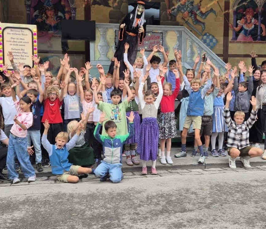Die beiden Klassen 2A und 4A durften gemeinsam als Partnerklassen einen tollen Ausflug zum Rupertikirtag machen! Schon bei der Ankunft war die Stimmung großartig – überall gab es etwas zu entdecken. Viele Kinder trauten sich auf die wilden Fahrgeschäfte, andere genossen lieber eine gemütliche Runde am Riesenrad oder das bunte Treiben auf dem Platz. Nach so viel Spaß und Bewegung war natürlich auch für das leibliche Wohl gesorgt: Gemeinsam ließen wir uns Käsespätzle, Würstel und Schweinsbraten schmecken! Ein herzliches Dankeschön geht an zwei Eltern von der Rauchenbühelhütte, die uns diesen besonderen Tag ermöglicht und begleitet haben. Ohne Ihre Unterstützung wäre dieser Ausflug nicht so reibungslos und schön verlaufen!