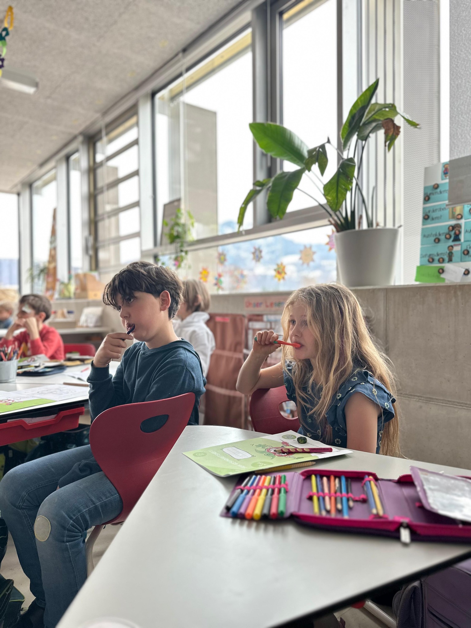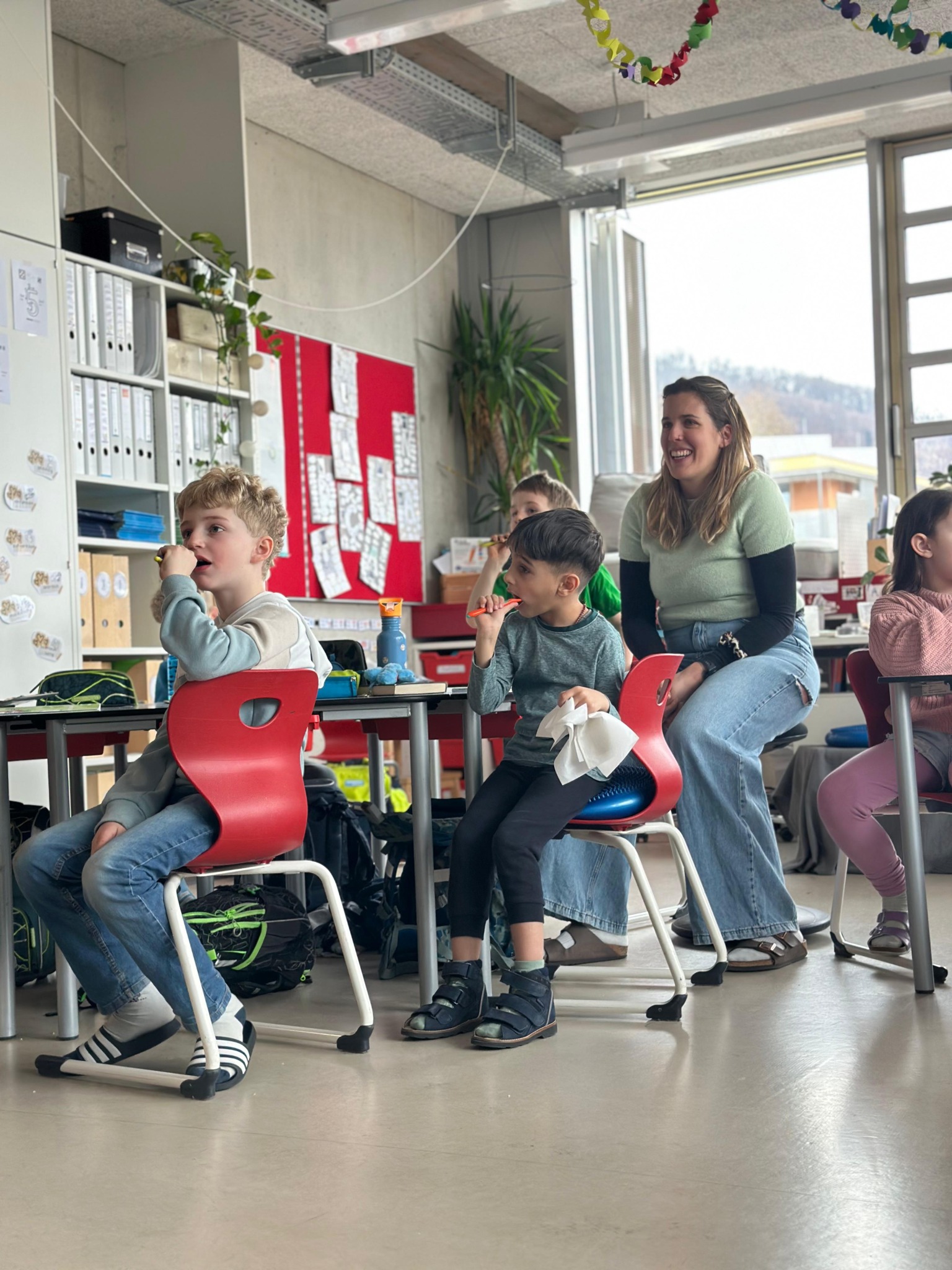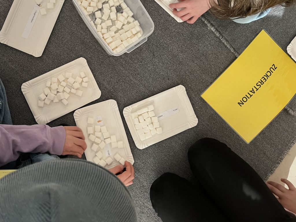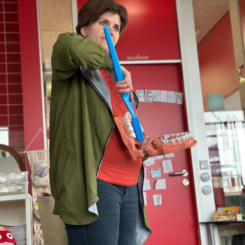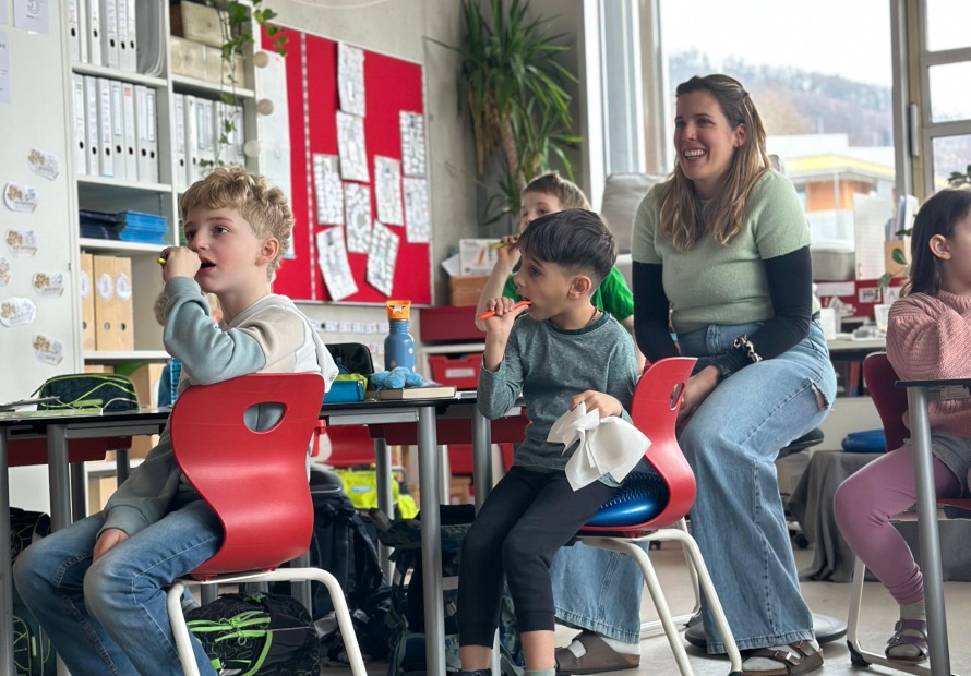 Avolino war in den letzten Wochen in einigen Klassen zu Besuch und brauchte unterschiedliche Themen rund um die Zahngesundheit mit. Während in der 1. Klasse der Fokus auf das Herausfallen der Zähne und der Unterschied zwischen dem Milch- und Erwachsenengebiss gelegt wurde, fokussiert sich die 2. Klasse bereits auf die Aufgabe der unterschiedlichen Zahnspanngen. In der 3. Klasse wurde vor allem die richtige Ernährung besprochen. Die Kinder haben an unterschiedlichen Stationen Schätzaufgaben und Rechercheaufgaben dazu durchgeführt.