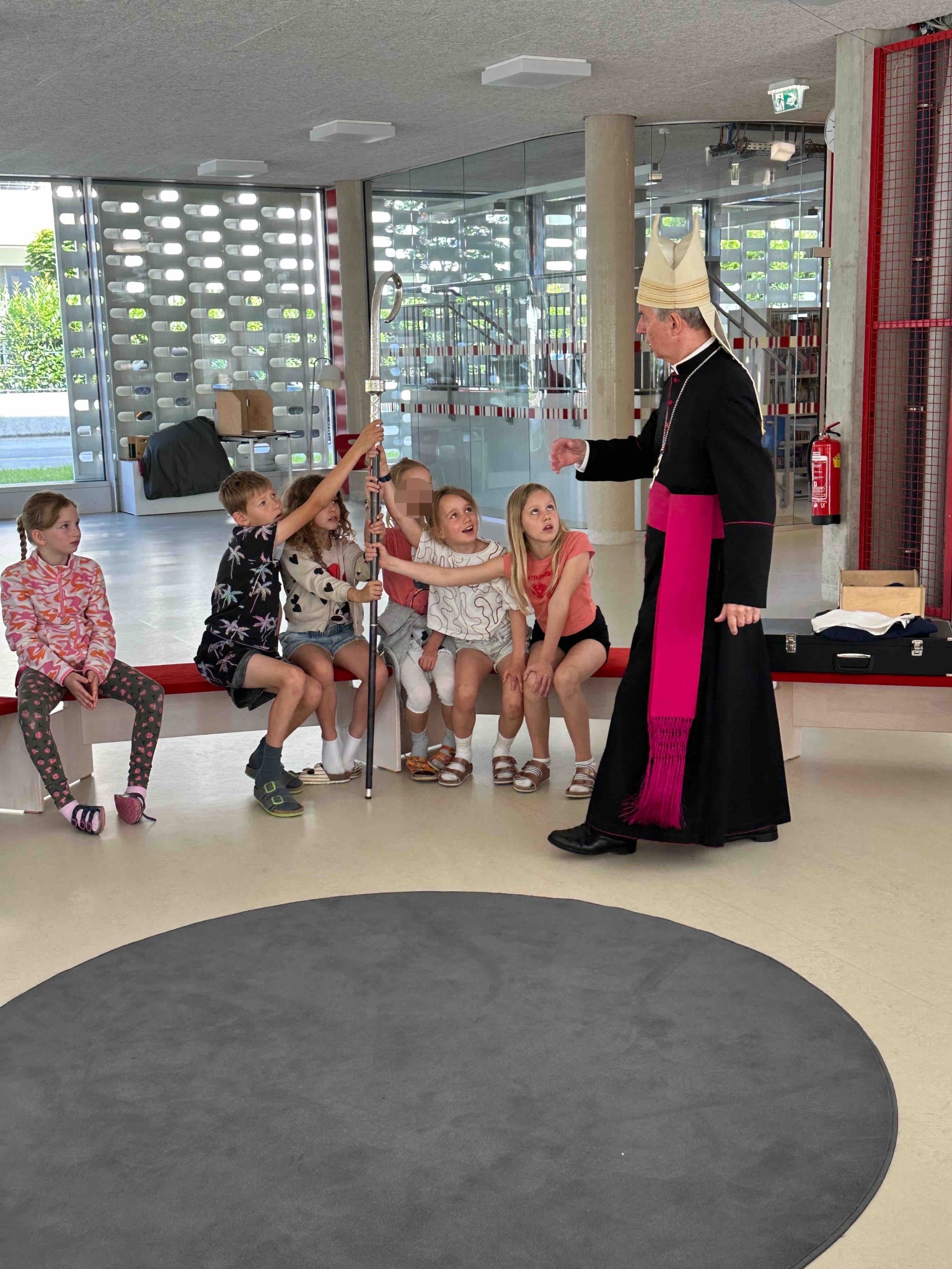 Der Bischof hat zwei seiner Feierutensilien mitgebracht und uns aus seinem Alltag erzählt.