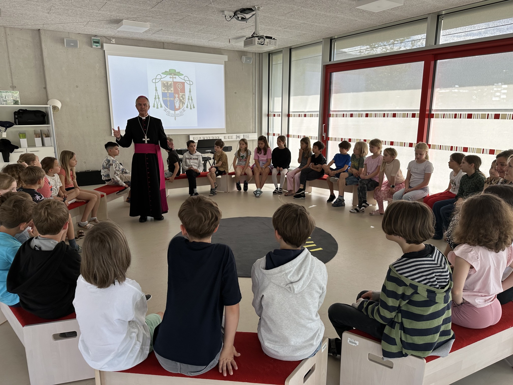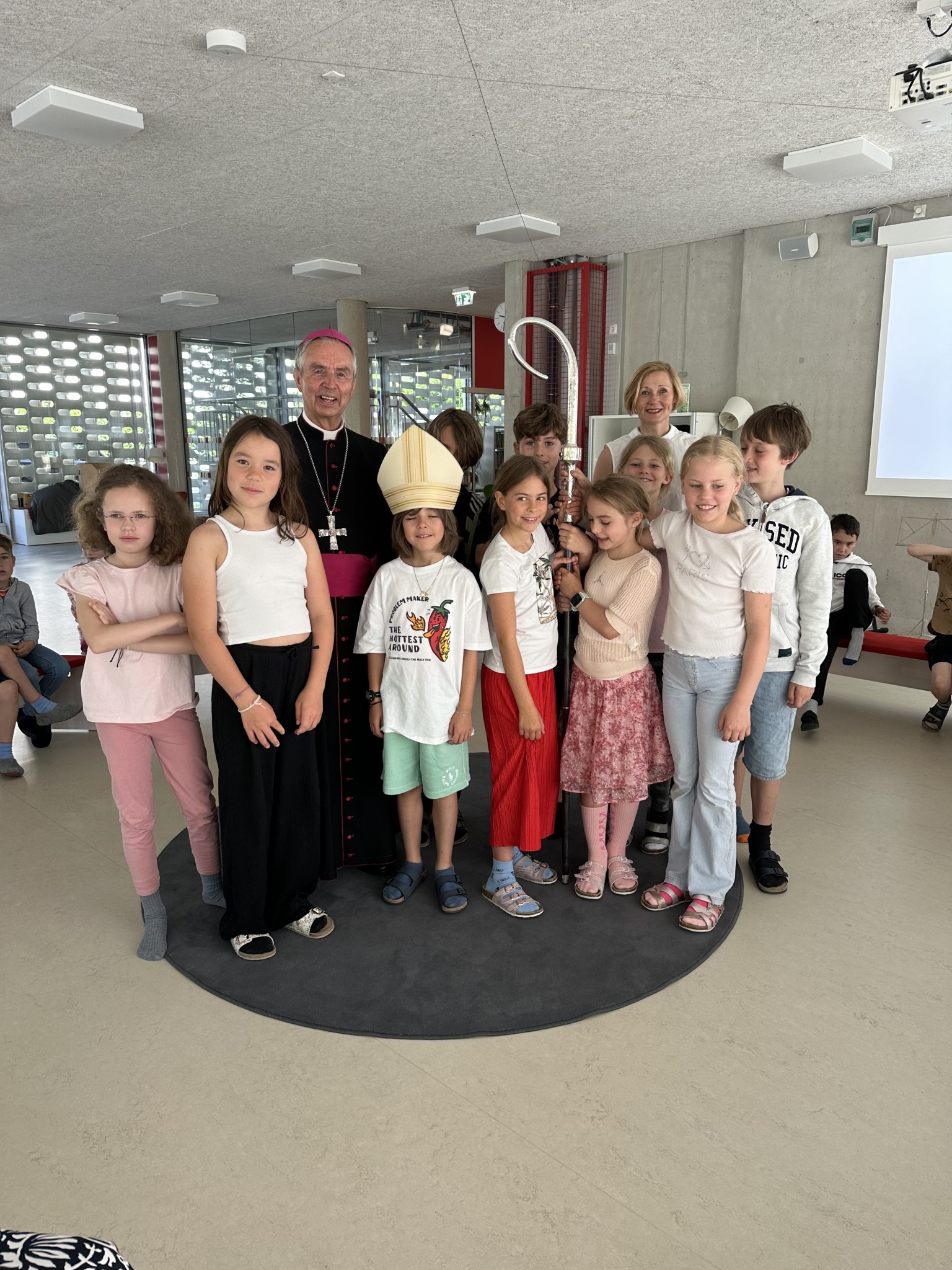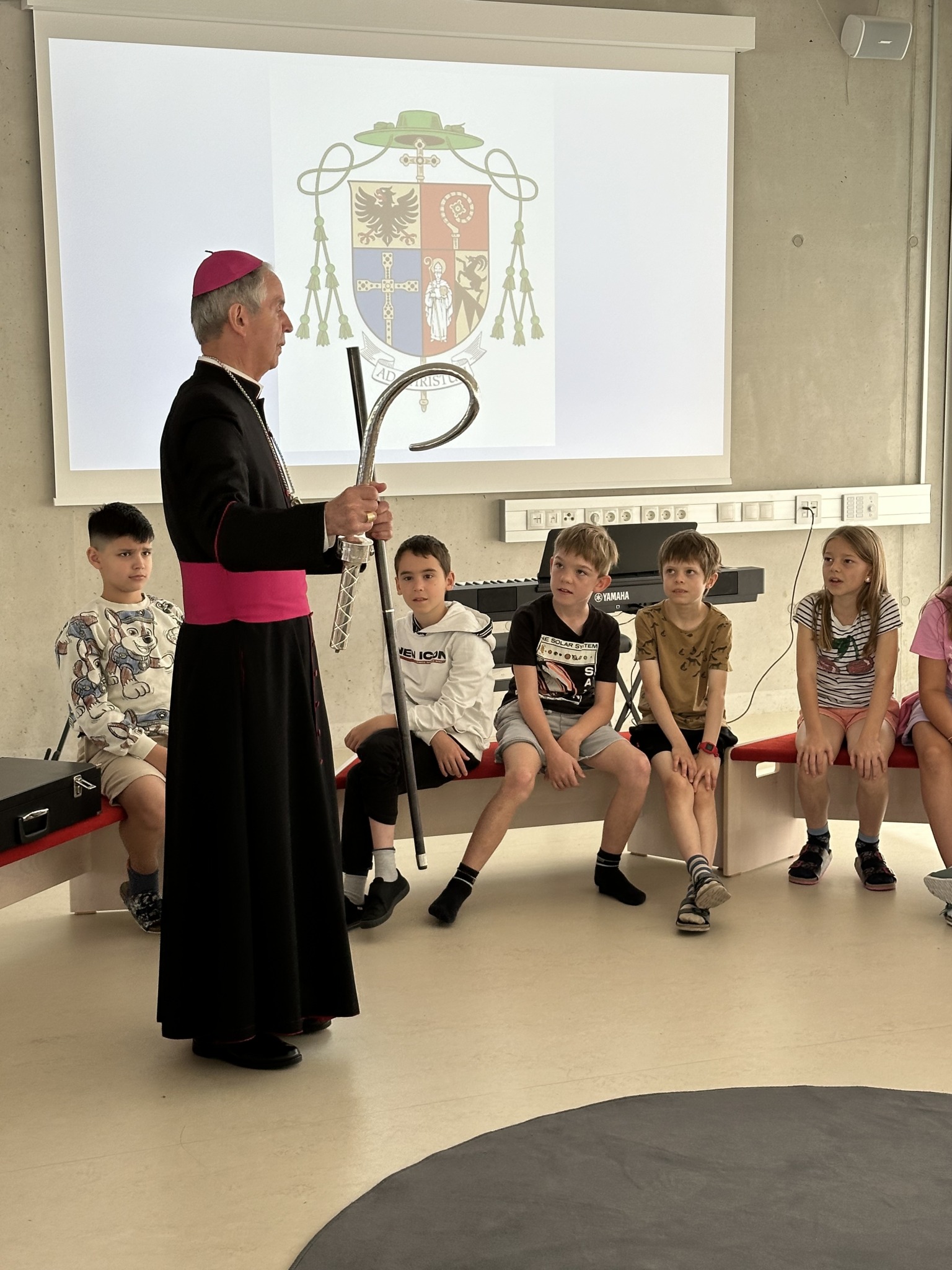 Auf Einladung der Religionslehrerin Rosemarie Grabner und ihrer Schülerinnen und Schüler hat uns am 6. Juni unser Weihbischof Hansjörg Hofer besucht.