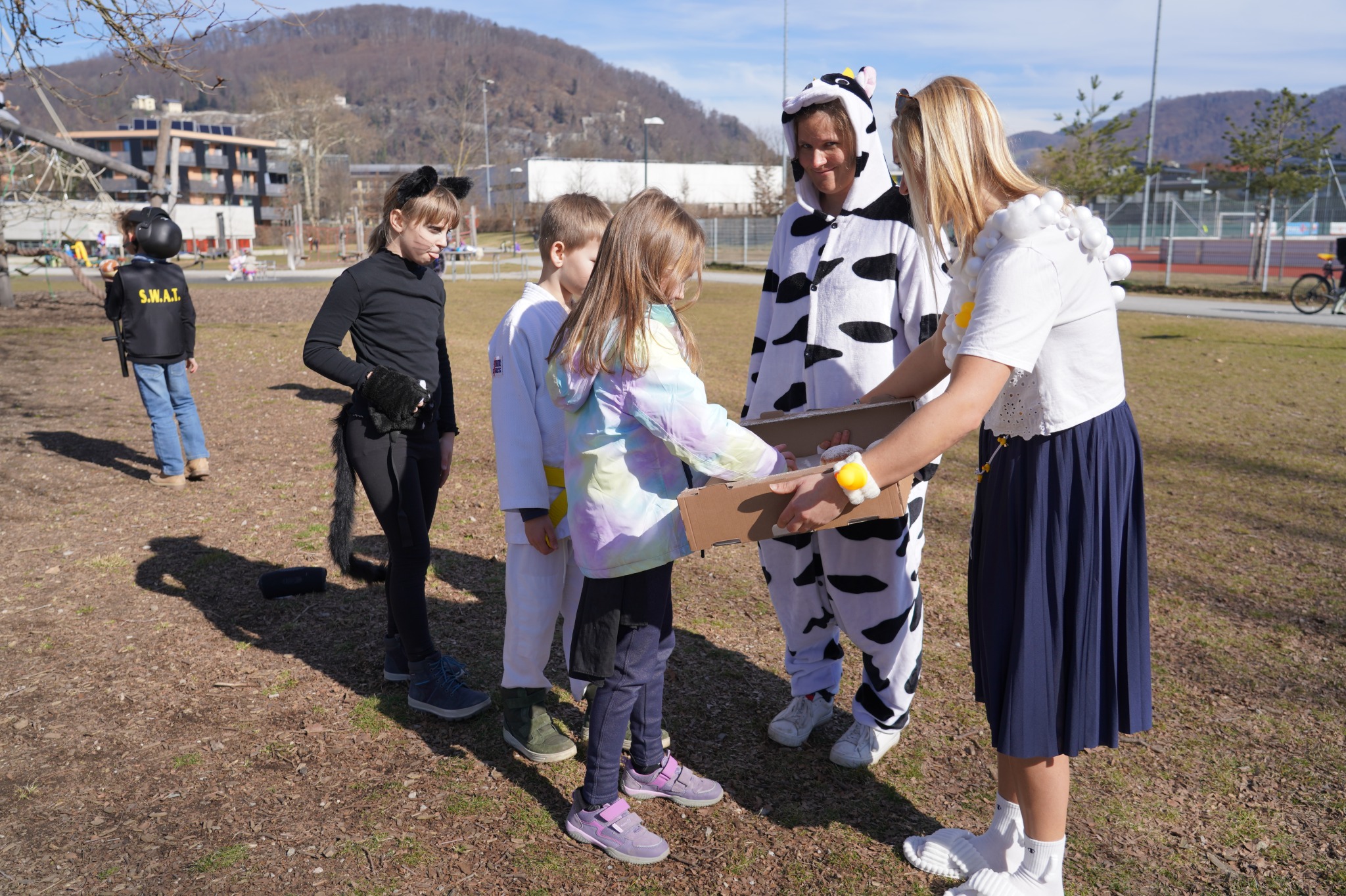 Ein süßes Highlight durfte natürlich nicht fehlen: Dank dem Elternverein durften sich alle über köstliche Faschingskrapfen freuen!