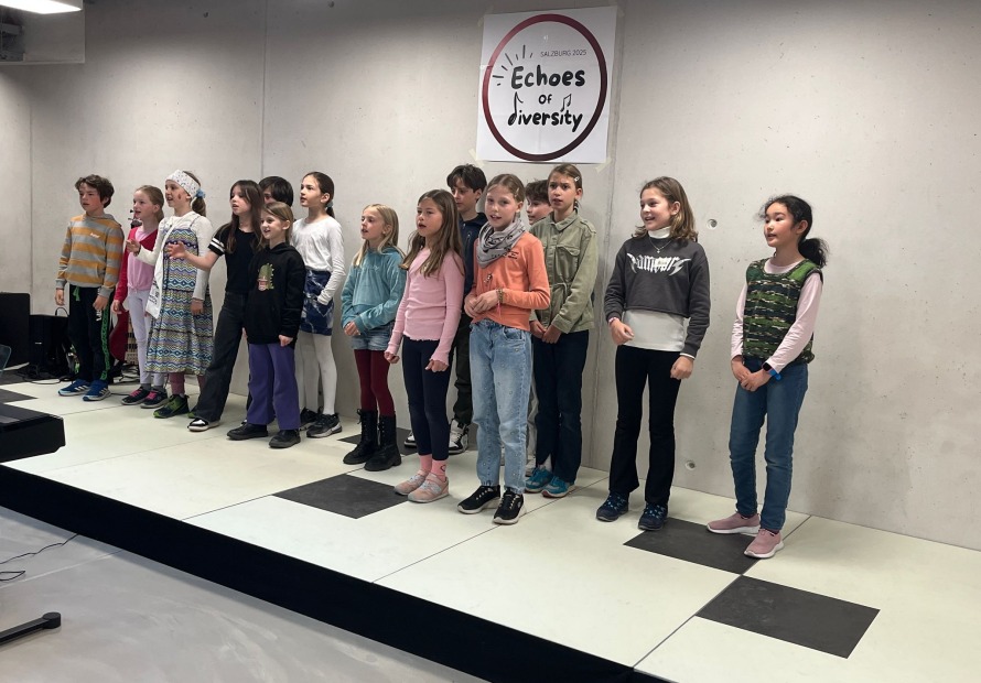Highlight des Tages war das große Mittagskonzert. Die Kinder der PVS, Studierende der PH Salzburg und Gaststudierende aus Italien, Frankreich und Estland gestalteten ein lautstarkes, emotionales, bewegendes – allenfalls großartiges Konzert, bei dem kein Bein stillhalten konnte.