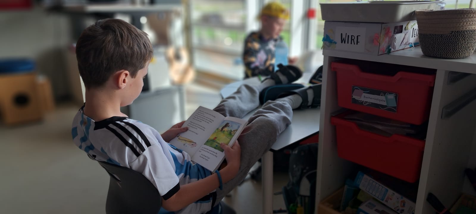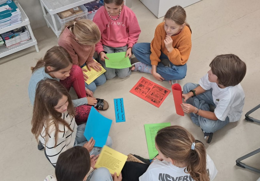 In unseren Literaturstunden erforschen wir die große Welt des Lesens, in all ihren Facetten. Ob es Vorstellungen der liebsten Bücher, Literaturgespräche, Lesetandems oder eine spielerische Auseinandersetzung mit Büchern sind, wir dürfen sie alle kennenlernen.