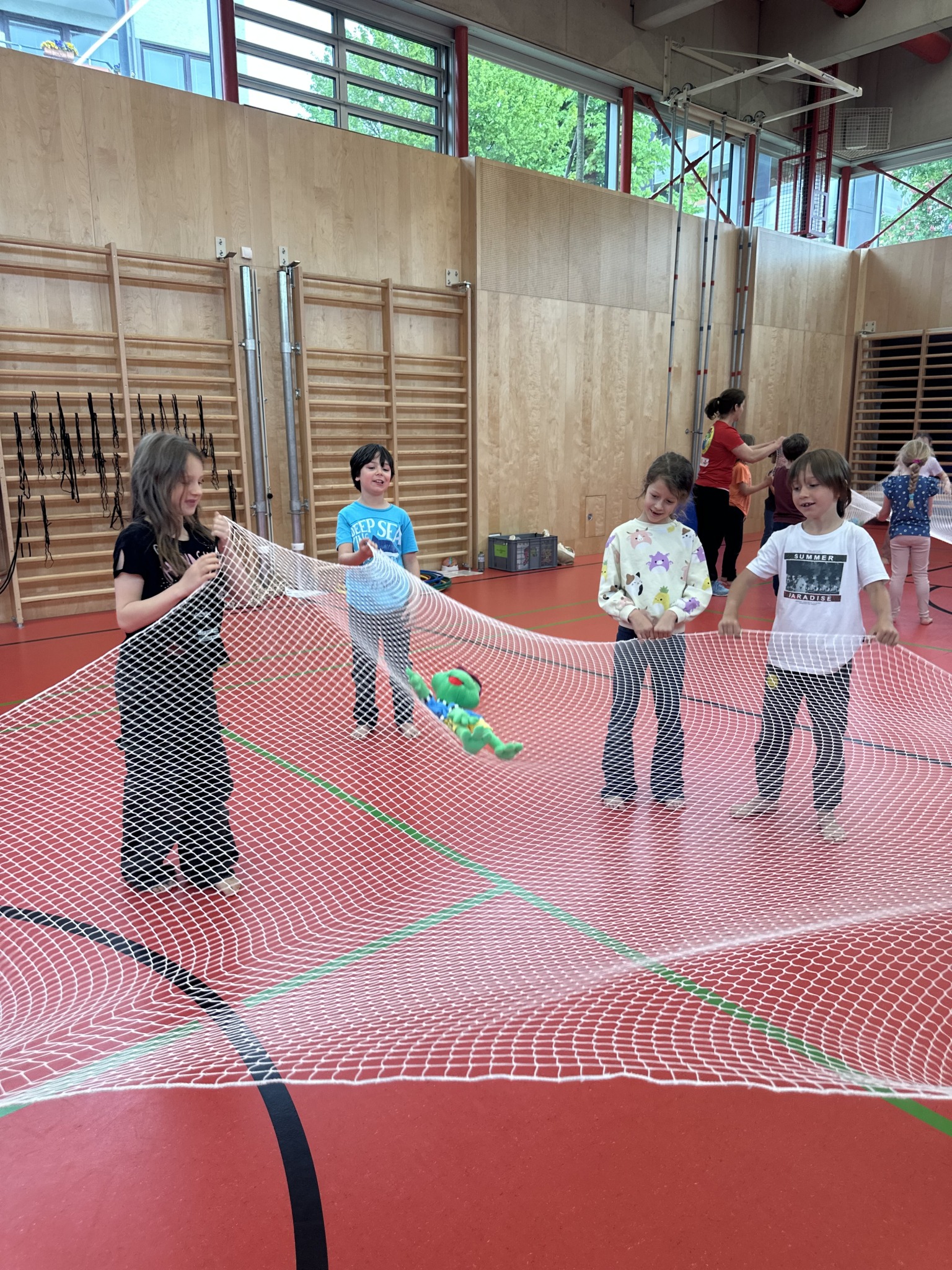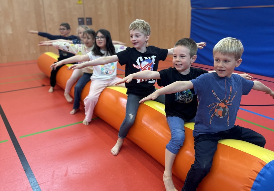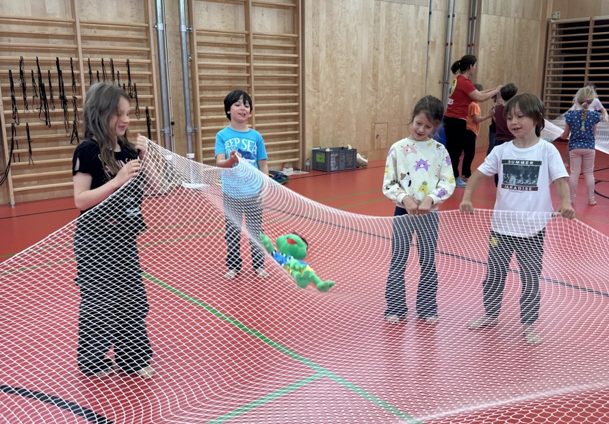 Die Einheiten mit Hopsi Hopper waren unterschiedlichen Bewegungseinheiten mit verschiedenen kurzen Gesundheitsinfos zu Themen wie Wirbelsäule, Herz-Kreislauf, Ernährung integriert.