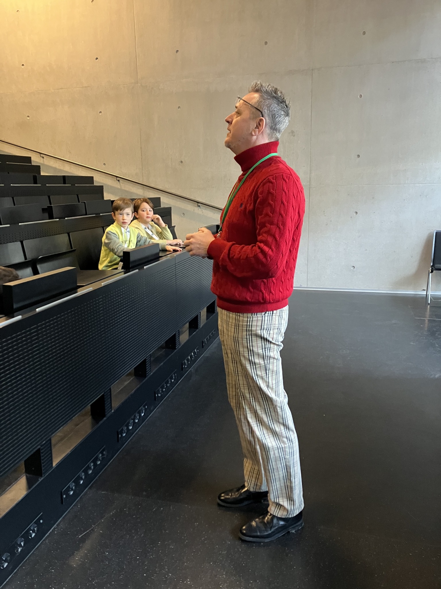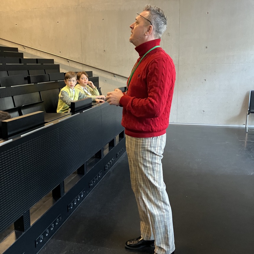 Tom had an amazing programme planned for us. First of all, we went in this very big lecture hall, and we were allowed to sit down, while Tom was explaining how things work at university.