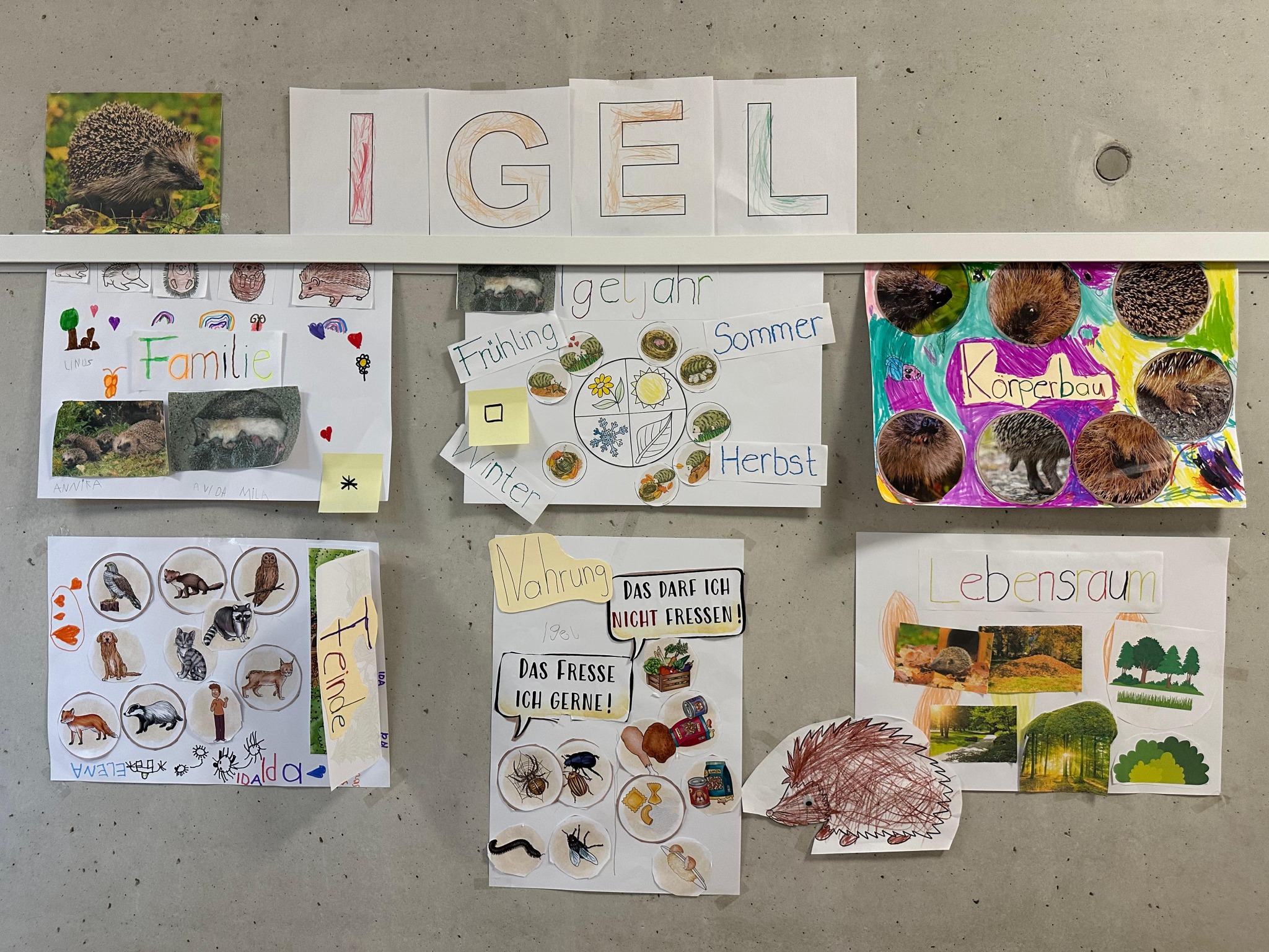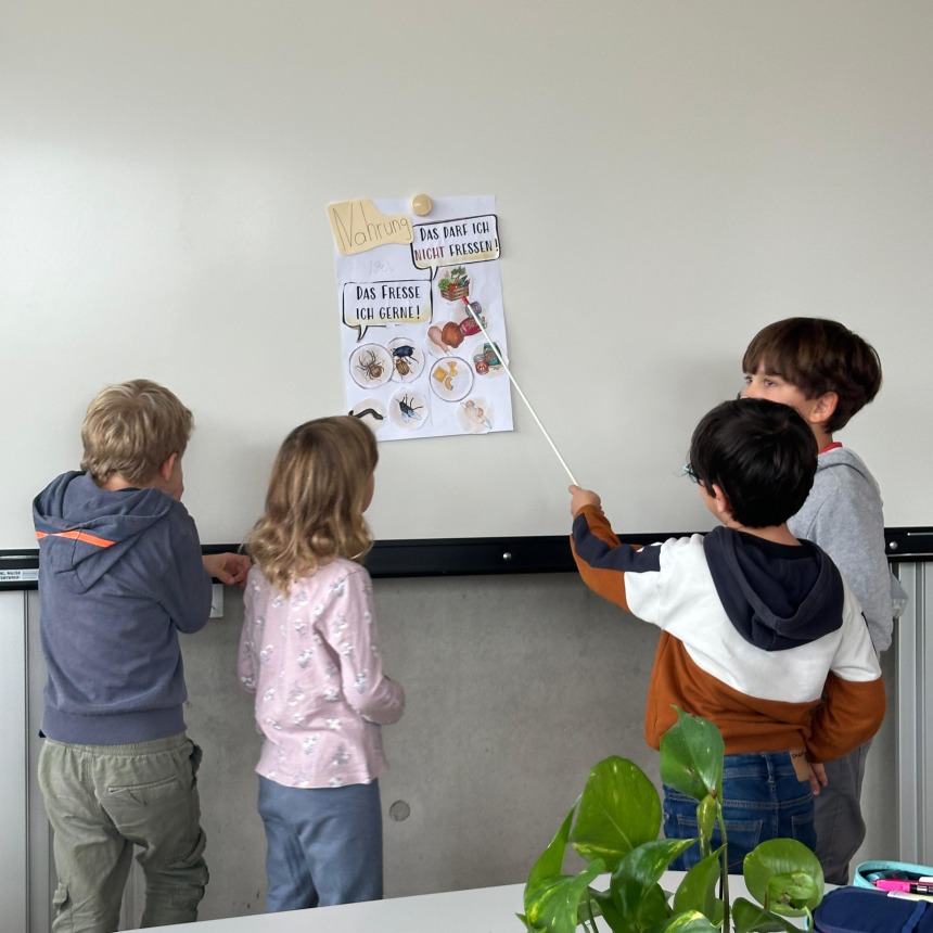 Themen waren Nahrung, Jahreskreis, Fortpflanzung, Feinde, Besonderheiten und vieles mehr. Dazu gestalteten wir in Kleingruppen unsere allerersten Plakate, die wir uns anschließend gegenseitig vorgestellt haben.