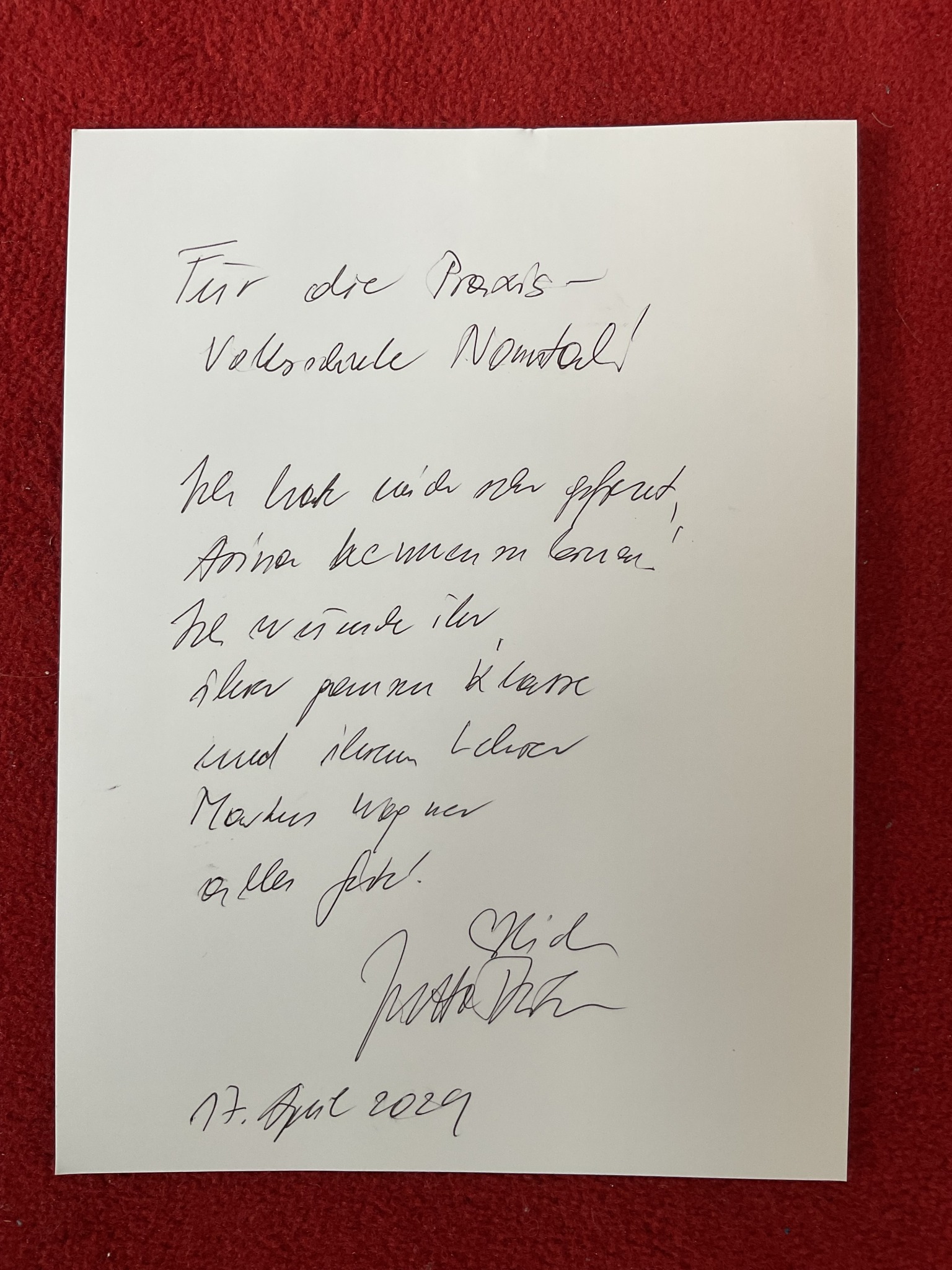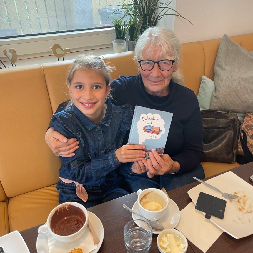 Die Autorin hat sich sehr über meine Nachricht gefreut und angeboten, dass wir uns in einem Kaffeehaus in Salzburg treffen. Das war sehr aufregend für mich. Jutta Treiber hat mir einige ihrer Bücher geschenkt und unterschrieben. Auf ein Foto hat sie eine Nachricht an meine ganze Klasse und meinen Lehrer geschrieben. Das war toll!