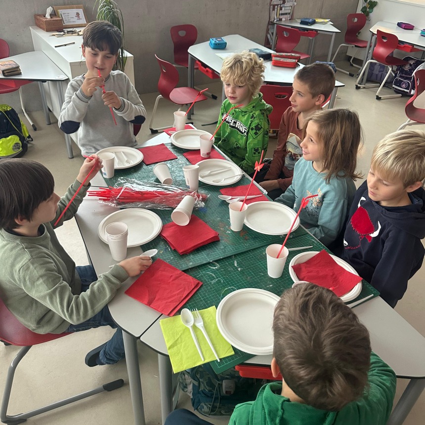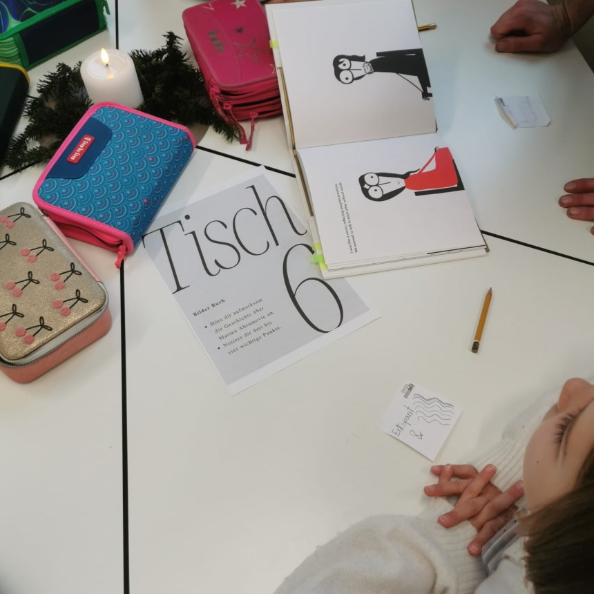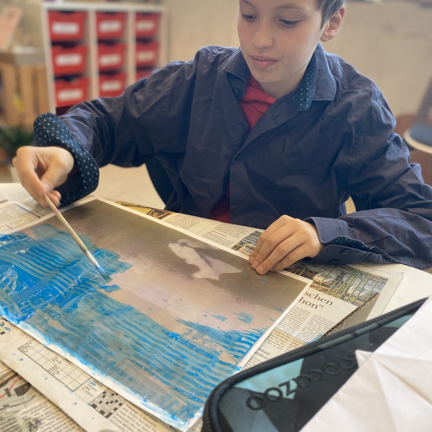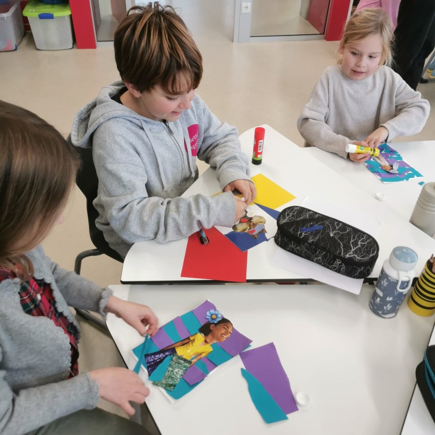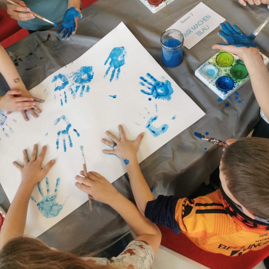 Im Rahmen der Lehrveranstaltung „Werkbegegnung“ an der PH Salzburg besuchten uns StudentInnen und gestalteten mit unseren SchülerInnen methodisch vielseitige und kreative Künst-Begegnungen. Ausgangspunkt waren Werke und Ideen bedeutender KünstlerInnen wie etwa Hannah Höch, Yves Klein, Daniel Spoerri, Marina Abramović, William Kentridge und Ai Weiwei. In abwechslungsreichen Unterrichtsgestaltungen konnten die Kinder unterschiedliche künstlerische Prozesse erproben: Sie experimentierten unter anderem mit der Farbe Blau, setzten Schattentheater um, loteten eigene Grenzen aus, gestalteten Bilder aus Lego, erstellten Collagen oder entwarfen fantasievolle Häuser aus Karton. Die Werkbegegnungen förderten Kreativität, Ausdruck und Neugier und machten die Auseinandersetzung mit unterschiedlichen Kunstformen zu einem besonderen Erlebnis.