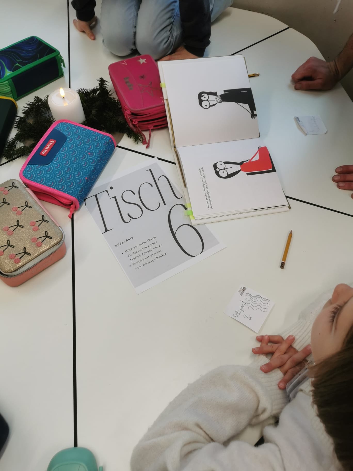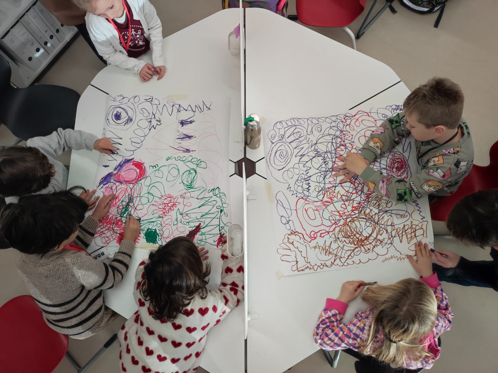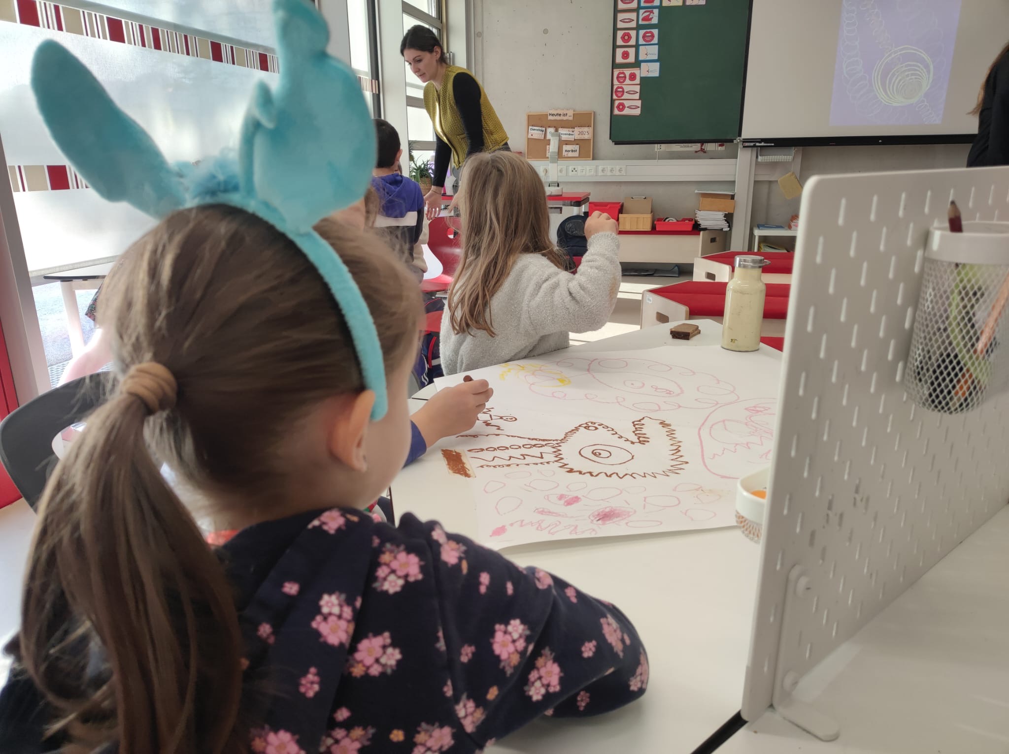 Im Rahmen der Lehrveranstaltung „Werkbegegnung“ an der PH Salzburg besuchten uns StudentInnen und gestalteten mit unseren SchülerInnen methodisch vielseitige und kreative Künst-Begegnungen. Ausgangspunkt waren Werke und Ideen bedeutender KünstlerInnen wie etwa Hannah Höch, Yves Klein, Daniel Spoerri, Marina Abramović, William Kentridge und Ai Weiwei. In abwechslungsreichen Unterrichtsgestaltungen konnten die Kinder unterschiedliche künstlerische Prozesse erproben: Sie experimentierten unter anderem mit der Farbe Blau, setzten Schattentheater um, loteten eigene Grenzen aus, gestalteten Bilder aus Lego, erstellten Collagen oder entwarfen fantasievolle Häuser aus Karton. Die Werkbegegnungen förderten Kreativität, Ausdruck und Neugier und machten die Auseinandersetzung mit unterschiedlichen Kunstformen zu einem besonderen Erlebnis.