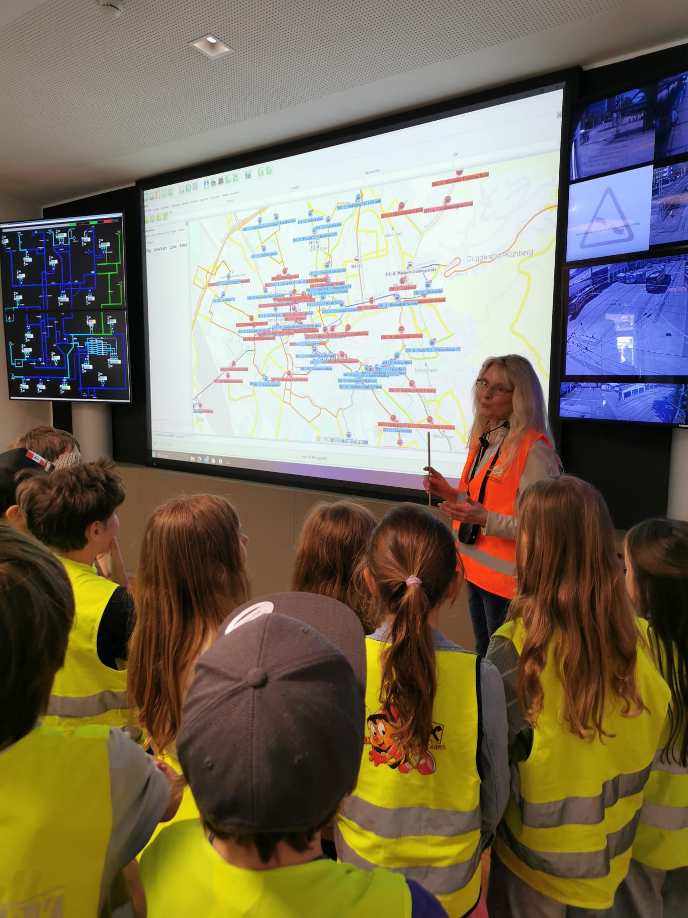 Die Klasse 3B hat im Rahmen der Verkehrserziehung am Projekt „Mobilität macht Schule“ teilgenommen. Ein besonderes Highlight war der Besuch der Obus-Remise, wo wir einen spannenden Einblick in die Welt des öffentlichen Nahverkehrs erhielten. In der Leitstelle durften wir live beobachten, wie die Busse durch Salzburg geleitet werden. Der Ausflug hat uns außerdem gezeigt, wie wichtig das richtige Verhalten in und um den Obus herum ist. Wir bedanken uns herzlich für die tolle Erfahrung!