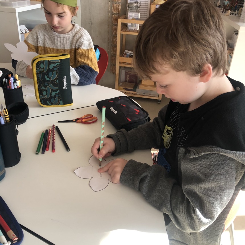 Die Kinder der 2b lernen den Künstler Monet kennen. Die Seerose ist eine Blume, die man mit diesem Künstler verbindet und darum schenken wir dieser Wasserblume unsere ganze Aufmerksamkeit.
