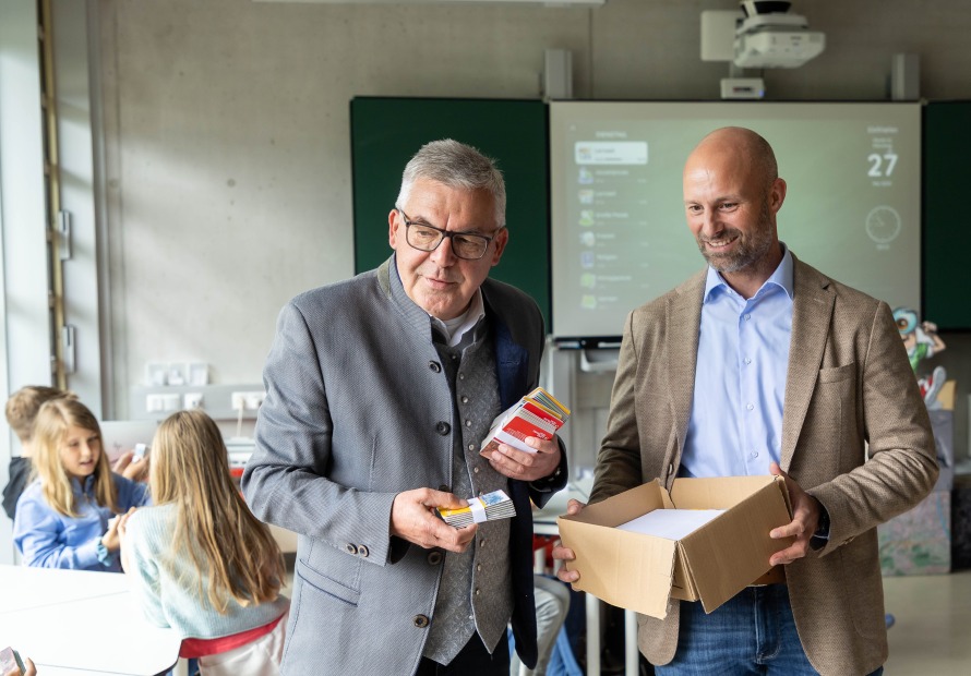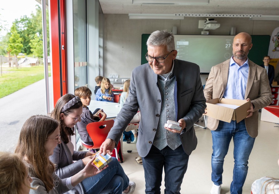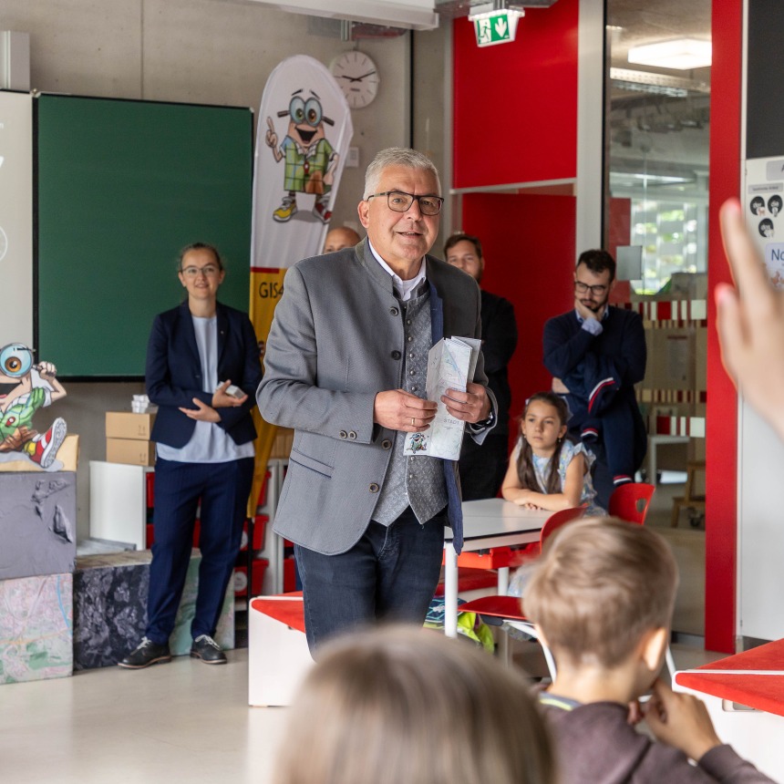 „Kinder, die früh den Umgang mit Karten lernen, entwickeln ein besseres Verständnis für ihre Region und ihre Umwelt“, erklärte Landesrat Schwaiger beim Besuch in unserer Schule.