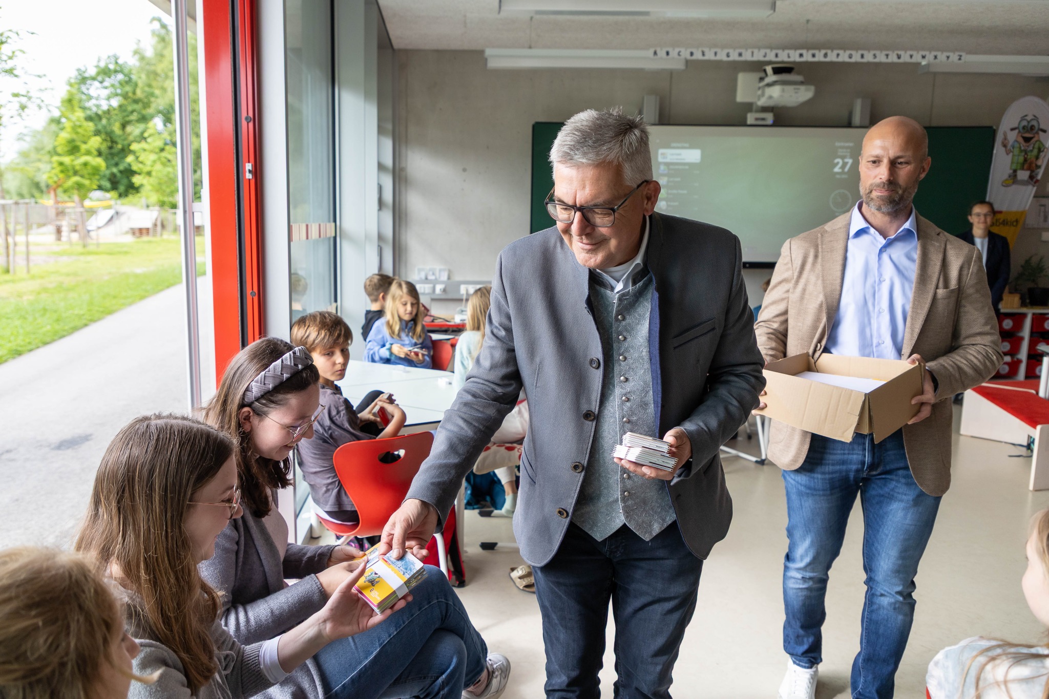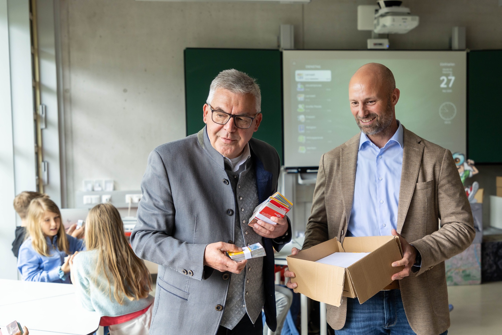 „Kinder, die früh den Umgang mit Karten lernen, entwickeln ein besseres Verständnis für ihre Region und ihre Umwelt“, erklärte Landesrat Schwaiger beim Besuch in unserer Schule.
