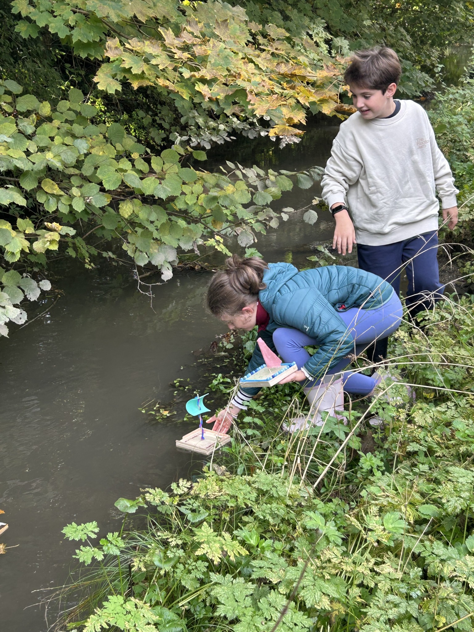Ein wunderbares Projekt begleitet die zwei 4. Klassen über den Herbst hinweg und mündete im Wäschergassen ( Hellbrunner)-Bacherl. Wir experimentierten in Technik und Design mit Gegenständen und Materialien und fanden heraus, was sinkt und was schwimmt. Wir lernten wie Auftrieb funktioniert und warum ein großer Frachter schwimmen kann. Alle Kinder gestalteten ihr eigenes prachtvolles Unikat…ein Schiff, das schwimmt. Damit spazierten wir zur Wäschergasse und tatsächlich sie schwammen, dass wir dabei etwas nass wurden war gar nicht schlimm.