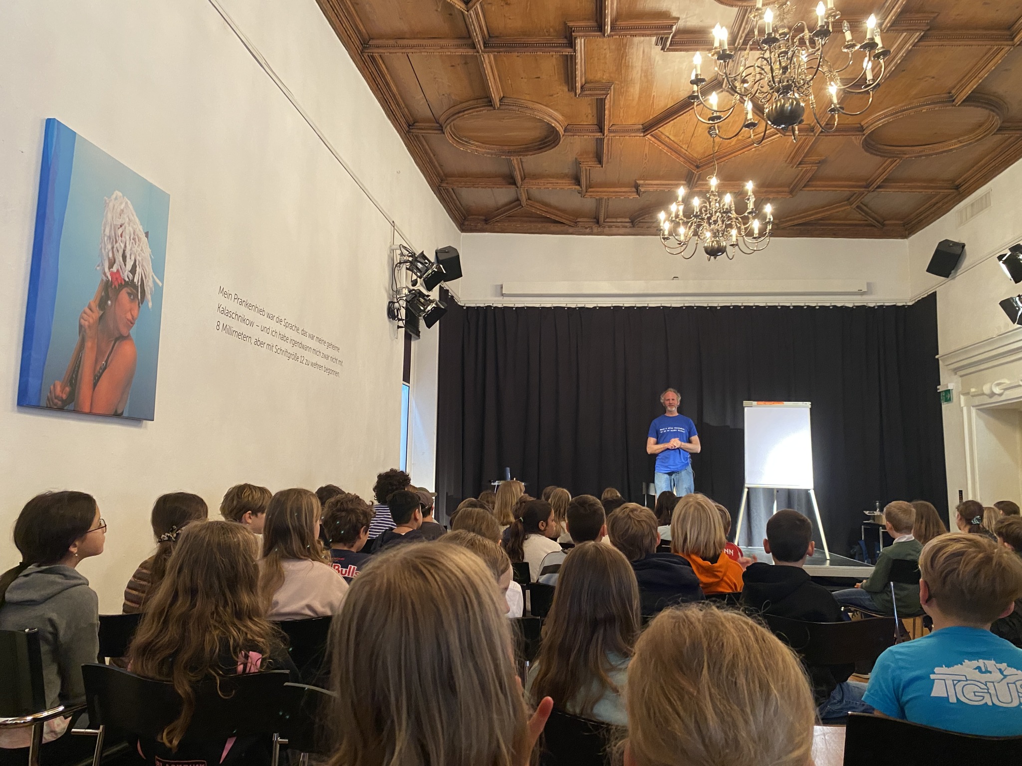 Ein besonderes Highlight war, dass Michael Roher nicht nur aus seinem Buch las, sondern uns auch ein Bild widmete, das er extra für uns gestaltet hatte. Diese persönliche Erinnerung wird in unserer Schule einen Ehrenplatz bekommen!