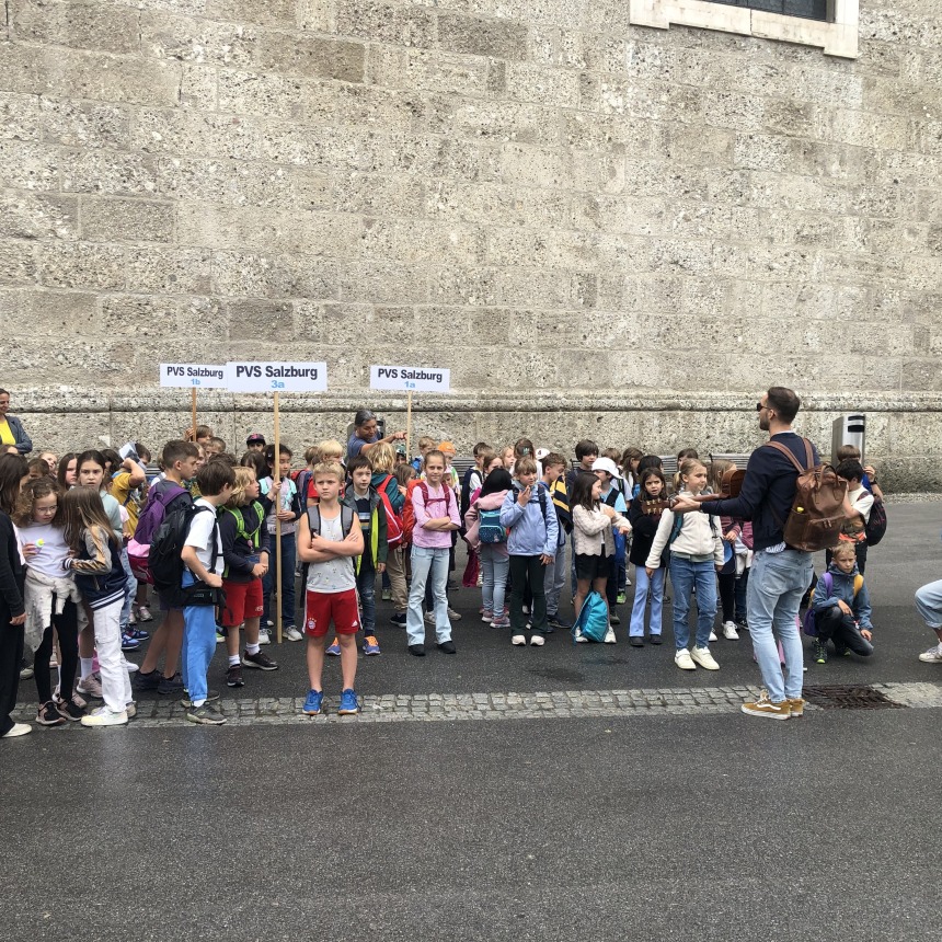 Aktuelles Aktuelles – Was gibt’s Neues?- Hier geben wir euch Einblicke in unseren spannenden und abwechslungsreichen Schulalltag. Avolino zu Besuch Avolino war in den letzten Wochen in einigen Klassen zu Besuch und brauchte unterschiedliche Themen rund um die Zahngesundheit mit. Während in der 1. Klasse der Fokus auf das Herausfallen der Zähne und der Unterschied zwischen dem Milch- und Erwachsenengebiss gelegt wurde, fokussiert sich… mehr Details Besuch im Literaturhaus Juhu, Letzter! Die 2. Klassen besuchten Jens Rassmus mit seinem Buch „Juhu, Letzter!“ im Literaturhaus Salzburg. Das Buch beginnt mit einer langweiligen Olympiade der Tiere – da immer die gleichen Tiere gewinnen. So veränderten die Tiere einfach kurzerhand die Regeln. Dadurch verliefen die Bewerbe… mehr Details 4B Music Project – Our Favourite Songs Music Project - Our Favourite Songs In their music lessons, the children of class 4b explored the wonderful world of music. They learned about different genres such as pop, classical, rock, and jazz, and discovered a variety of instruments from the piano and guitar… mehr Details Bilinguale Schilder für unser Schulhaus Die Kinder der 3a haben mit großer Begeisterung bilinguale (deutsch-englische) Schilder für unser Schulhaus gestaltet. Im Rahmen des Englischunterrichts wurden passende Begriffe gesammelt, übersetzt und kreativ umgesetzt. So finden sich nun im gesamten Schulgebäude liebevoll gestaltete Beschriftungen wie „Library – Bibliothek“ oder „Gym –… mehr Details The IBC at University Nonntal Yesterday we went to visit PLUS University, known as Unipark. An English lecturer called Tom had invited us. The students were on mid-term break, but we saw a few because they were having exams. Tom had an amazing programme planned for us. First of… mehr Details IBCs Workshop ‚Bauklotz, Ziegel, Holzbaustein‘ im Spielzeugmuseum Heute waren wir im Spielzeugmuseum. Wir haben an dem Workshop „Bauklotz, Ziegel, Holzbaustein“ teilgenommen. Es war sehr interessant und hat voll Spaß gemacht. Wir sind in zwei Gruppen aufgeteilt worden. Eine Gruppe hat zuerst mit Schiefsteine gearbeitet, während die zweite Gruppe mit Anker Steine… mehr Details Citizenship Studies in der Praxis Studierende des Lehramts Primarstufe der PH Salzburg haben ihre selbst erstellten Erklärvideos in drei Klassen der Praxisvolksschule präsentiert. In einem abwechslungsreichen Stationsbetrieb gestalteten sie Lernangebote zu den Themen „Frieden, Gerechtigkeit und starke Institutionen“, „Leben unter Wasser“ und „Nachhaltiger Konsum“ – angelehnt an die Ziele… mehr Details Der Zauber der Kreativität Im Zuge der Lehrveranstaltung „Verfassen von Texten“ entwickelten Studierende der PH Salzburg neun abwechslungsreiche Workshops rund um das kreative Schreiben und führten diese in der Praxisvolksschule durch. Eingeladen waren die Schülerinnen und Schüler der 2. bis 4. Ganztagsklassen, die am Nachmittag des 12. Jänner… mehr Details 3B auf Zeitreise ins Alte Ägypten Im Rahmen eines Projektvormittags setzten sich Studierende der Pädagogischen Hochschule gemeinsam mit der Klasse 3b intensiv mit dem Thema Altes Ägypten auseinander. Ausgangspunkt war die sogenannte Geschichtskette „Entwicklung des Menschen“, die den Kindern einen altersgerechten Überblick über wichtige historische Epochen vermittelte und das Alte… mehr Details Magnetismus an Stationen Im Rahmen eines spannenden Projektvormittags tauchten die Schüler:innen der 3a und 3b in die faszinierende Welt des Magnetismus ein. An verschiedenen Stationen konnten die Kinder durch eigenes Ausprobieren, Forschen und Beobachten grundlegende physikalische Phänomene entdecken und verstehen. Die Ergebnisse wurden in einem Forscherbuch festgehalten… mehr Details Willkommen zum Adventslesen! Auch in diesem Advent fand das beliebte „Adventlesen“ an der Praxisvolksschule statt. Am 23.12.2025 wurde in der 4. Stunde der gebundene Unterricht aufgelöst. Die Kinder zogen ein Kärtchen und suchten die entsprechende Ziffer an den Türen im Schulhaus. So entstanden heterogene, klassenübergreifende Kleingruppen. Hinter… mehr Details Kreative Werkbegegnungen an der PVS Kreative Werkbegegnungen an der PVS Im Rahmen der Lehrveranstaltung „Werkbegegnung“ an der PH Salzburg besuchten uns StudentInnen und gestalteten mit unseren SchülerInnen methodisch vielseitige und kreative Künst-Begegnungen. Ausgangspunkt waren Werke und Ideen bedeutender KünstlerInnen wie etwa Hannah Höch, Yves Klein, Daniel Spoerri, Marina Abramović,… mehr Details Viertklässler*innen auf Spurensuche im ZR 1.000.000 Die 4a und Viertklässler:innen aus der IBC entdecken die Million am Millionenbuch und nutzen den Kreativraum bis zum letzten Millimeter aus. Aus wie vielen Tausenderbüchern besteht eigentlich so ein Millionenbuch? . Wie lange braucht man, wenn man in Tausenderschritten bis zur Million zählt? Und… mehr Details Winterfest 2025 Auch heuer durften wir an der Praxisvolksschule wieder ein stimmungsvolles Weihnachtsfest erleben. Mit leuchtenden Kinderaugen, fröhlichem Lachen und liebevoll ausgewählten Liedern aus unserem Assembly-Repertoire entstand eine besonders warme und festliche Atmosphäre, die uns alle in Vorweihnachtsstimmung versetzte. Ein herzliches Dankeschön gilt dem Elternverein und… mehr Details Die 1b zu Besuch bei den Artgenossen Die 1b war bei den Artgenossen im Künstlerhaus zu Besuch und durfte dort künstlerisch tätig werden. Im Atelier fügten die Kinder zuerst Kartonstücke zu Skulpturen zusammen und gipsten diese dann ein. Das Arbeiten mit dem Gips war eine aufregende Erfahrung. Unsere einzigartigen Kunstwerke durften… mehr Details Blick in die Zukunft – BE-Projekt der 2a & 4a Klasse Wie wird unsere Welt einmal aussehen? Werden Roboter unseren Alltag begleiten? Und wie verändert sich das Universum? Mit diesen spannenden Zukunftsfragen haben sich die Klassen 2a und 4a in einem geme